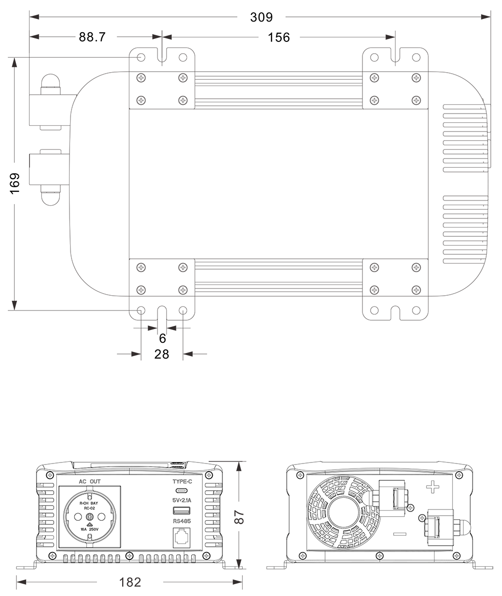 ภาพวาดเครื่องกล:(309x182x87 มม.)