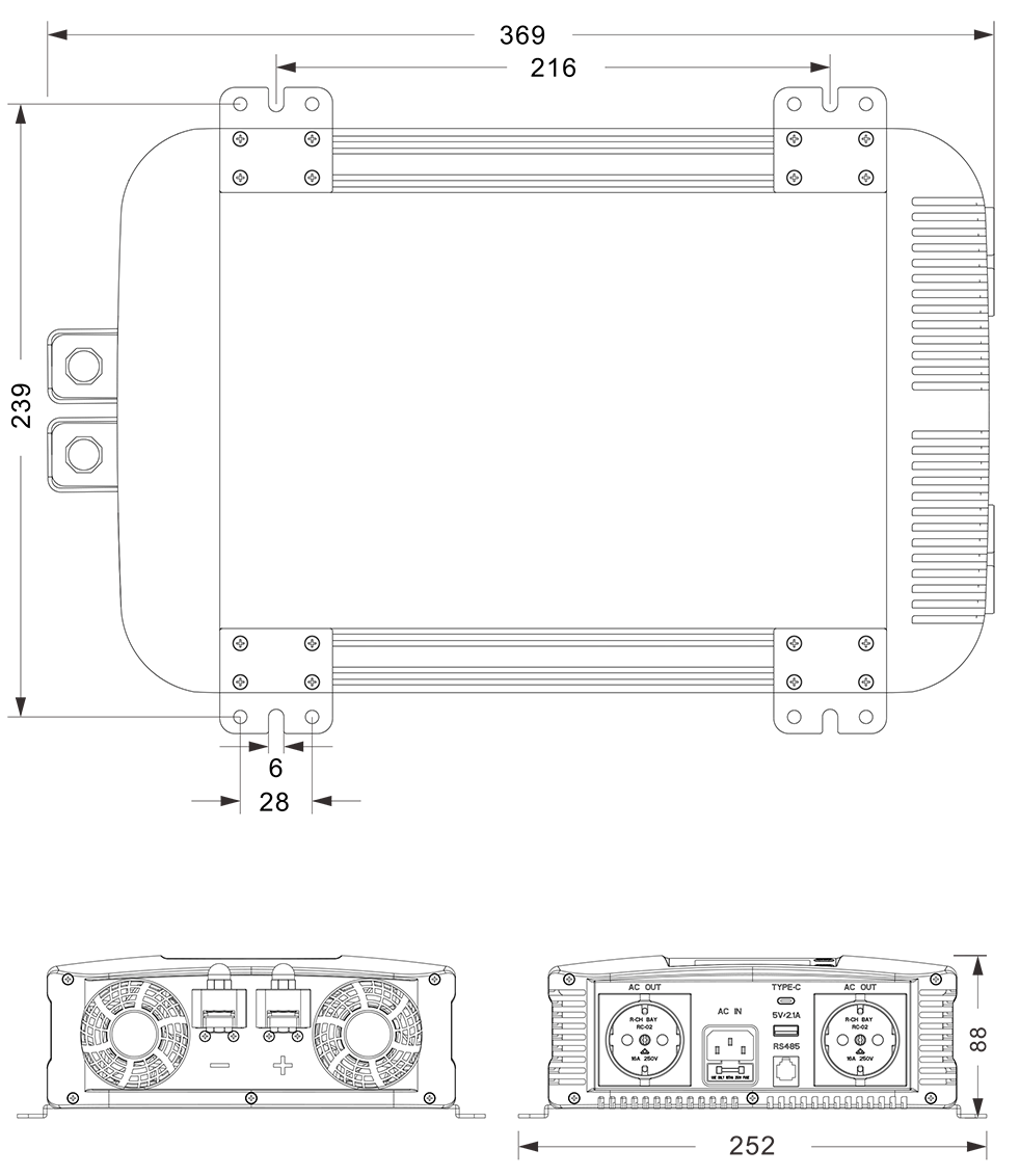 ภาพวาดเครื่องกล:(369x252x88 มม.)
