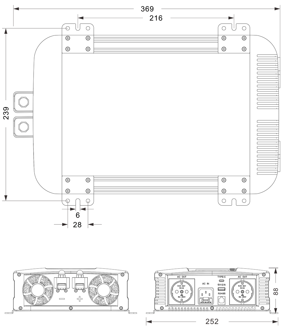 ภาพวาดเครื่องกล:(369x252x88 มม.)