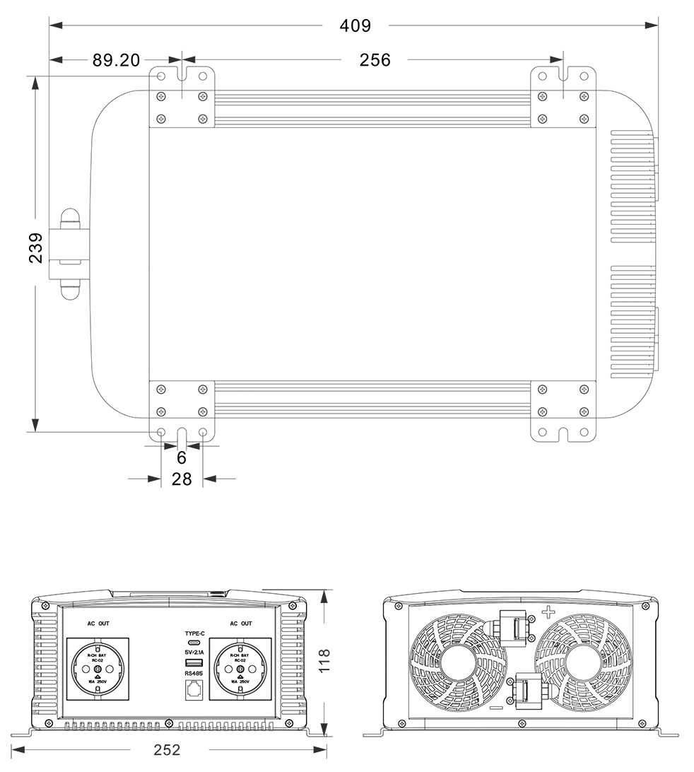 ภาพวาดเครื่องกล:(409x252x118 มม.)