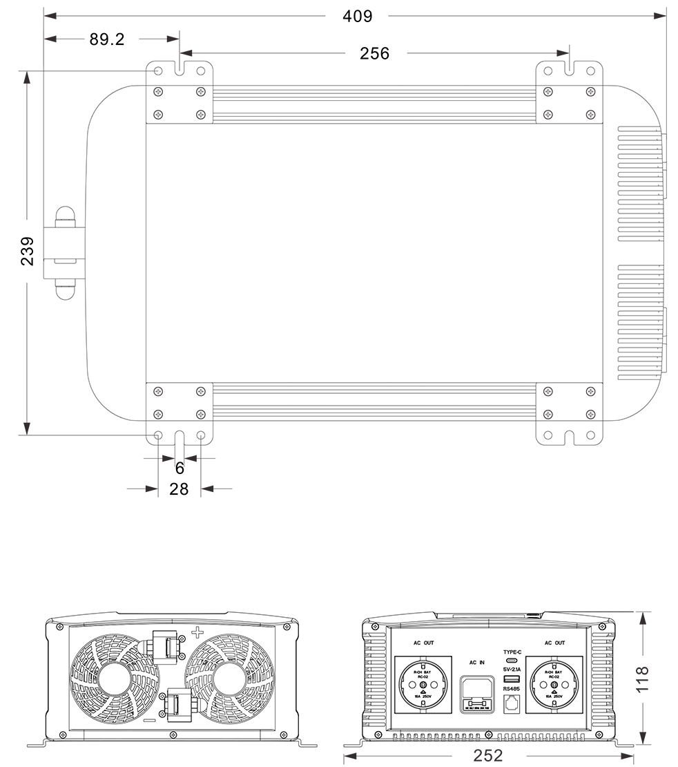 ภาพวาดเครื่องกล:(409x252x118 มม.)