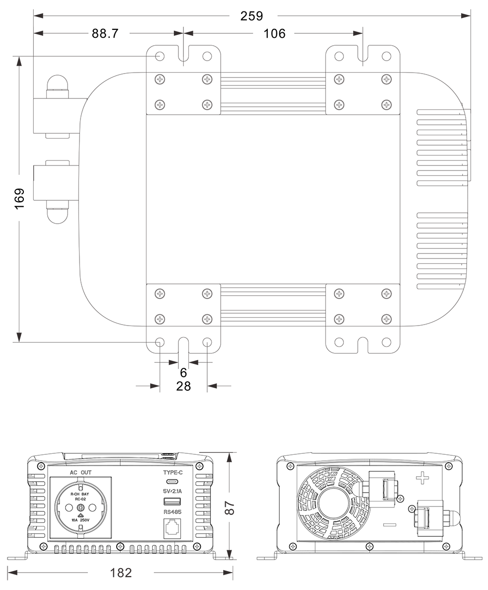 ภาพวาดเครื่องกล:(259x182x87 มม.)