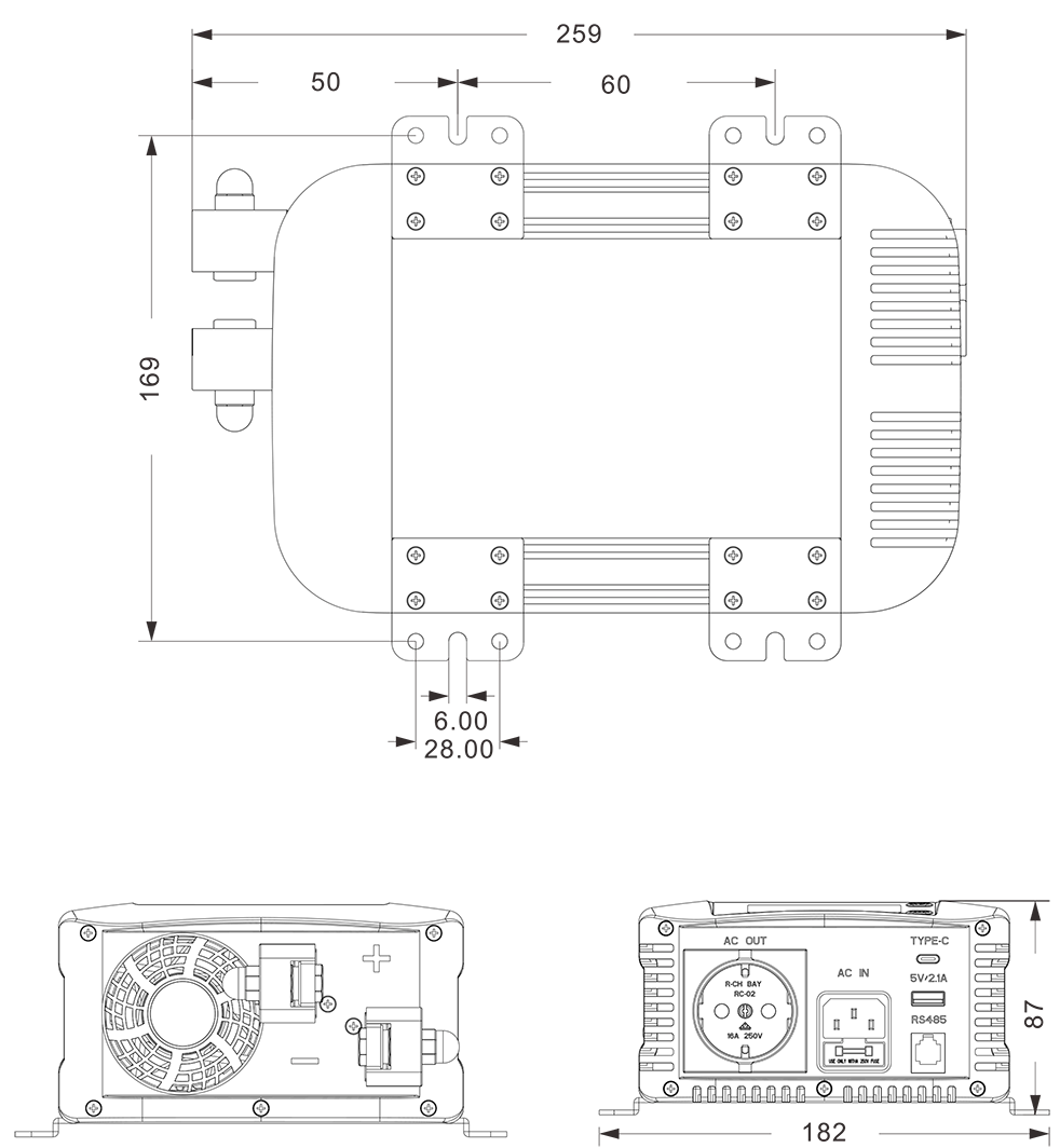 ภาพวาดเครื่องกล:(259x182x87 มม.)