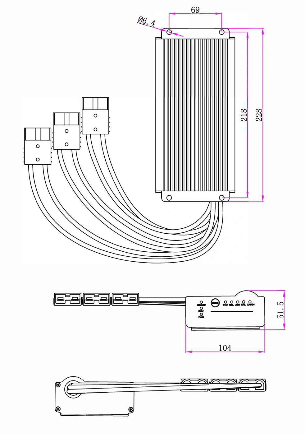 ภาพวาดเครื่องกล:(228x104x51.5 มม.)