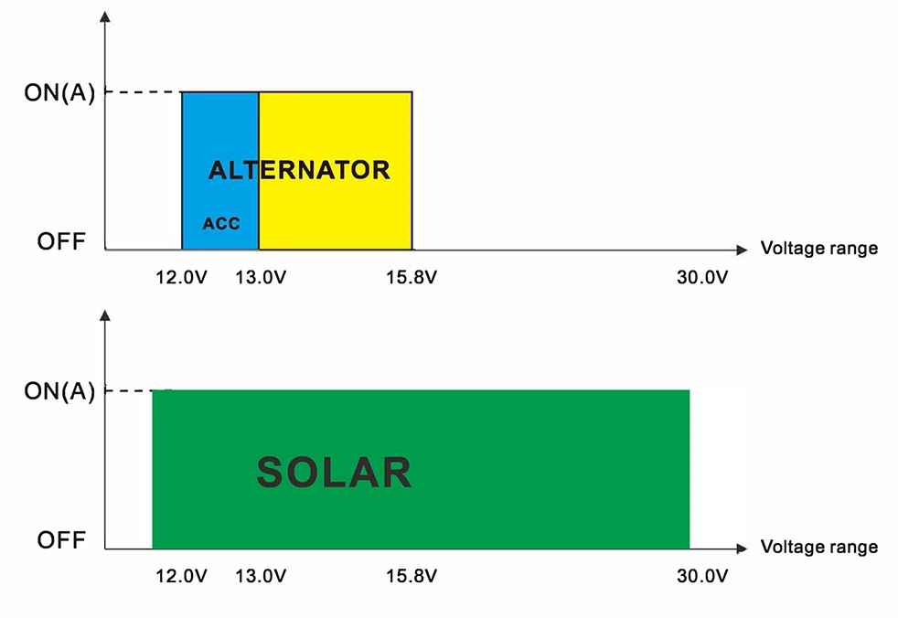 ●อินพุต AC สากล 12.0V-30.0V 0.2V สำหรับพลังงานแสงอาทิตย์/1 2.0V-15.BV 0.2V สำหรับรถยนต์